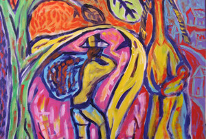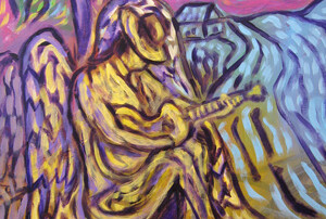 Sergio Mojica was born in El Salvador and grew up in New York City. A self-taught artist and musician he believes that music and art influence each other. Some of the musicians who have shaped his art have been Carlos Santana and Thelonious Monk to name a few. He sees his art as a marriage between the old folklore of Latin America and European influences such as Surrealism, Abstraction, as well as Expressionism. It is somewhere between these vast universes that Sergio exists while trying to defy category. He says, “I still refer to some of these art movements as “cool” since their age to me is irrelevant. These styles were cool then and they will forever be “cool” to me. I am influenced by countless artists musically and artistically, even by writers such as Rod Serling or subversive poets like Roque Dalton. My inspiration comes from everyday people and life.”