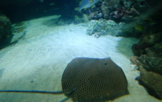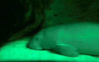 Holly is a woman from Florida who wears fine jewelry and always arrives fashionably and creatively dressed. Except for the Florida connection, I would never have dreamed of her special talent. Holly can talk to the sea creatures, even through the glass, and they appear to listen. Holly's normal voice is quite loud, brash, carrying far. When she talks to the sea creatures, she speaks with the tone of a new lover, sweet & inviting. The leopard ray came right to the glass and seemed to reach out to her. The dugong stopped sleeping, and swam to her.