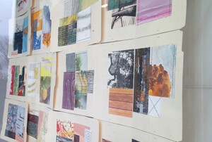 The idea for the project is modeled on traditional quilting bees. In which women brought fabric scraps to each other’s homes and assembled the scraps into quilts. They worked side by side creating functional objects of great beauty. This is no longer a common practice in our culture. In fact, there are few opportunities for side-by-side making. Working with our hands in the presence of others is a condition that creates intimacy and a feeling of comfort. Even amongst strangers. The level of engagement and enthusiasm of participants in the salons surprised me. Confirming my idea that there is value in creating opportunities to make in the context of community. I am very grateful to the artists who donated their work and or the many people who came to help stitch. For the organizations that hosted the events and the exhibition.
