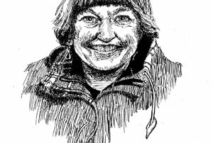 A smiling woman with a warm coat, Donella Meadows, helped model the world economy for the Club of Rome in 1972. She was the author of The Limits to Growth and Thinking in Systems.